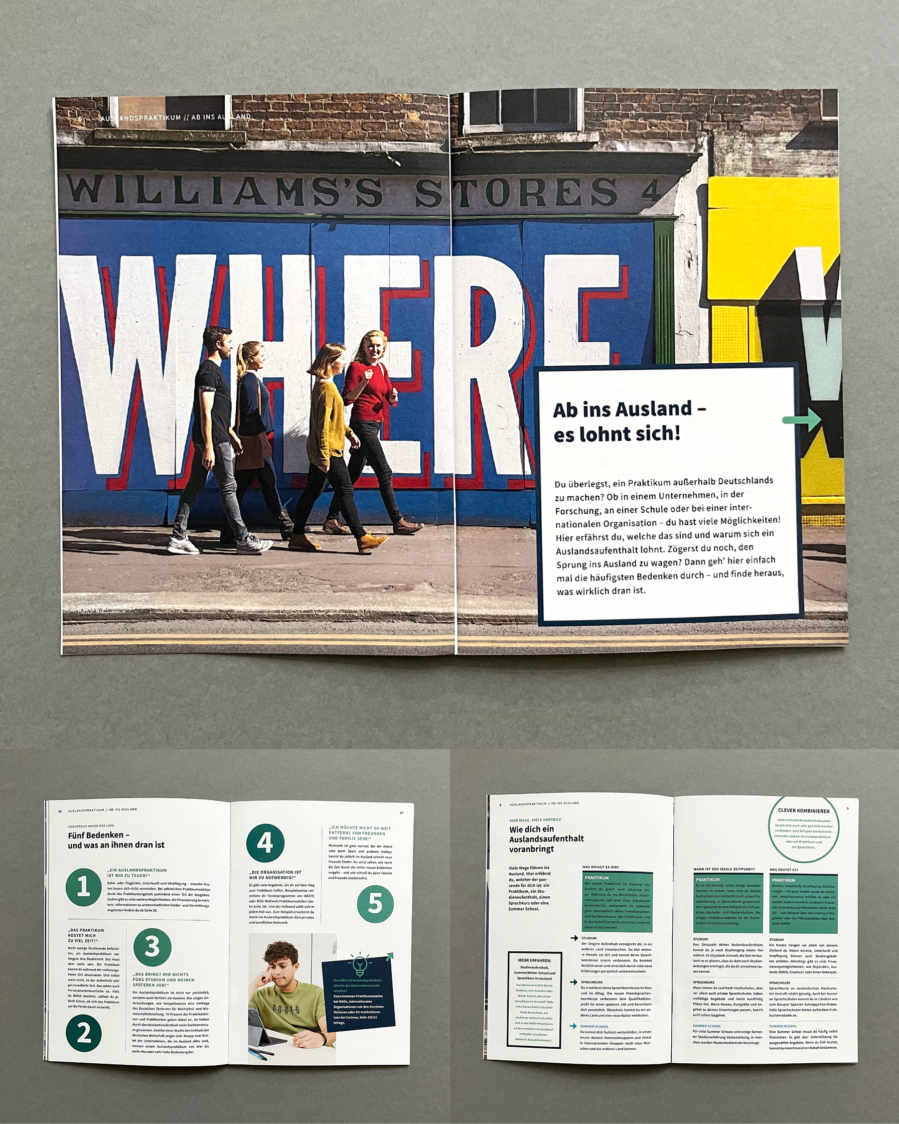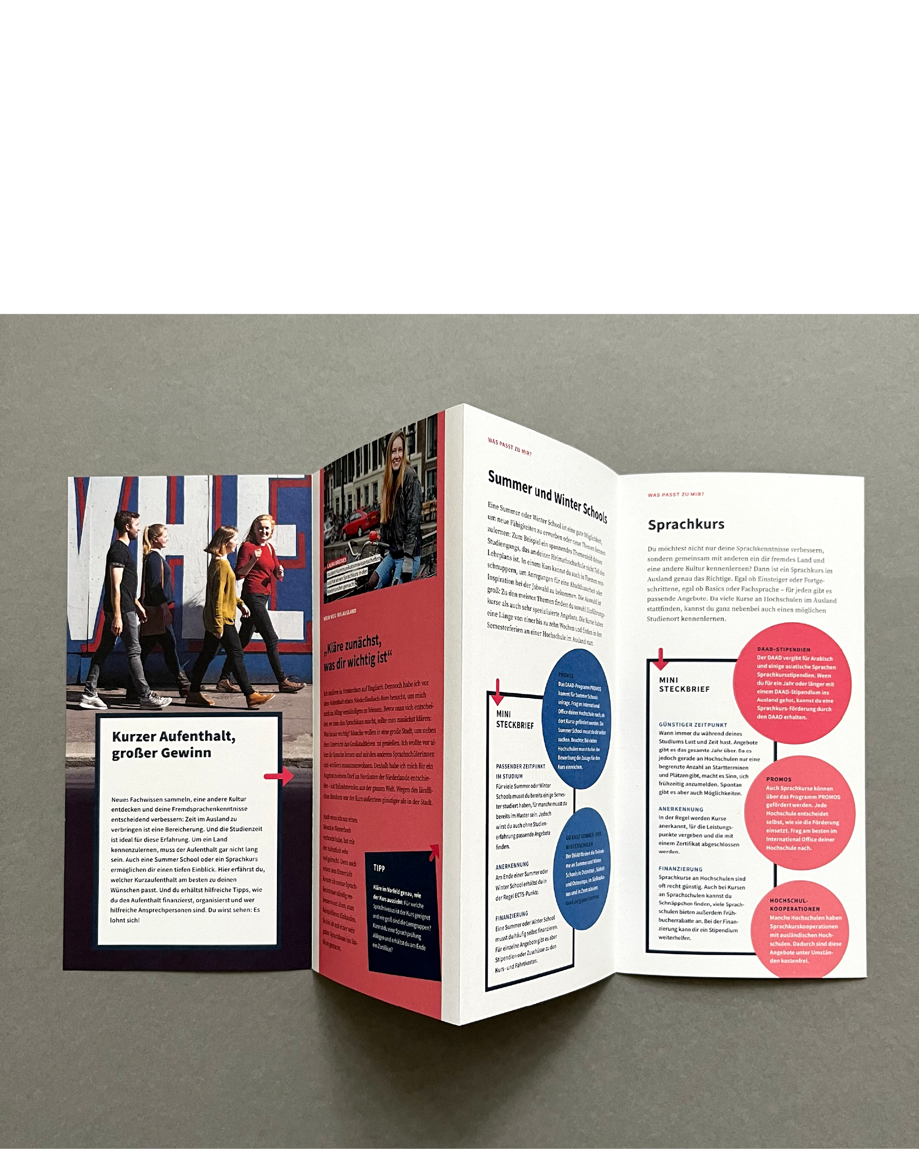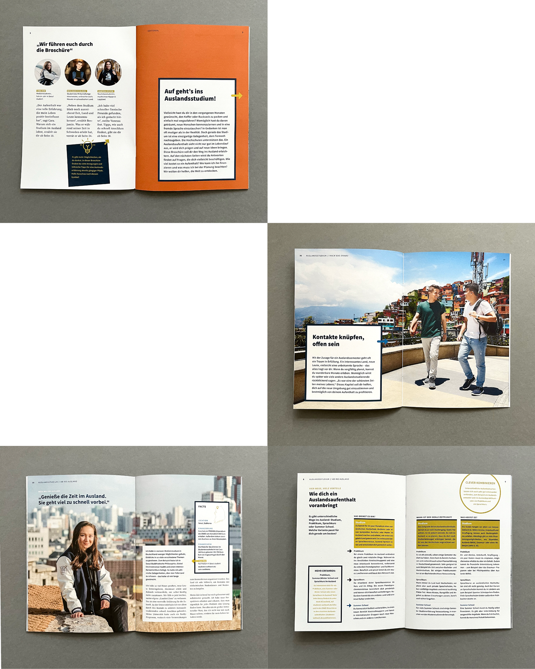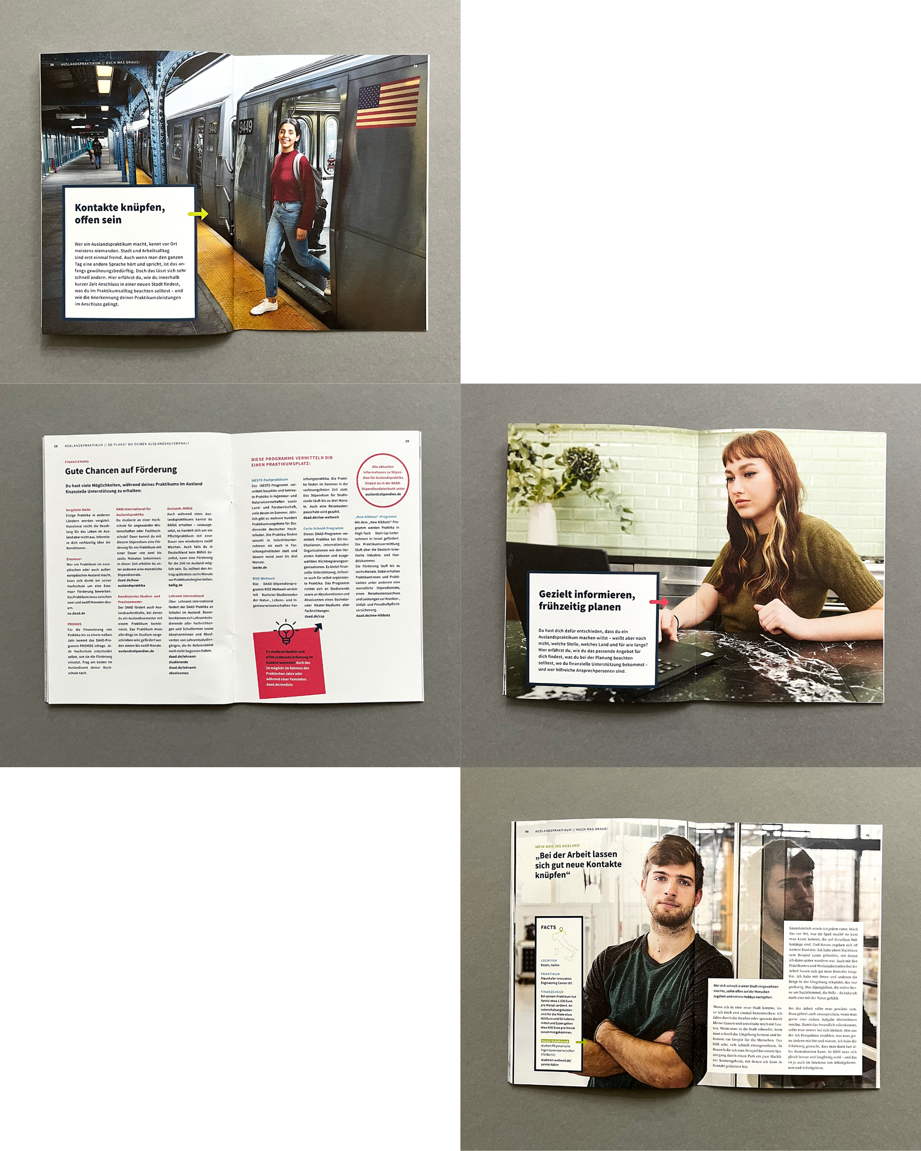 Redesign von Broschüren für Studierende und Praktikanten für den Deutschen Akademischen Austauschdienst (DAAD), Berlin, realisiert in Zusammenarbeit mit Fazit Communication.