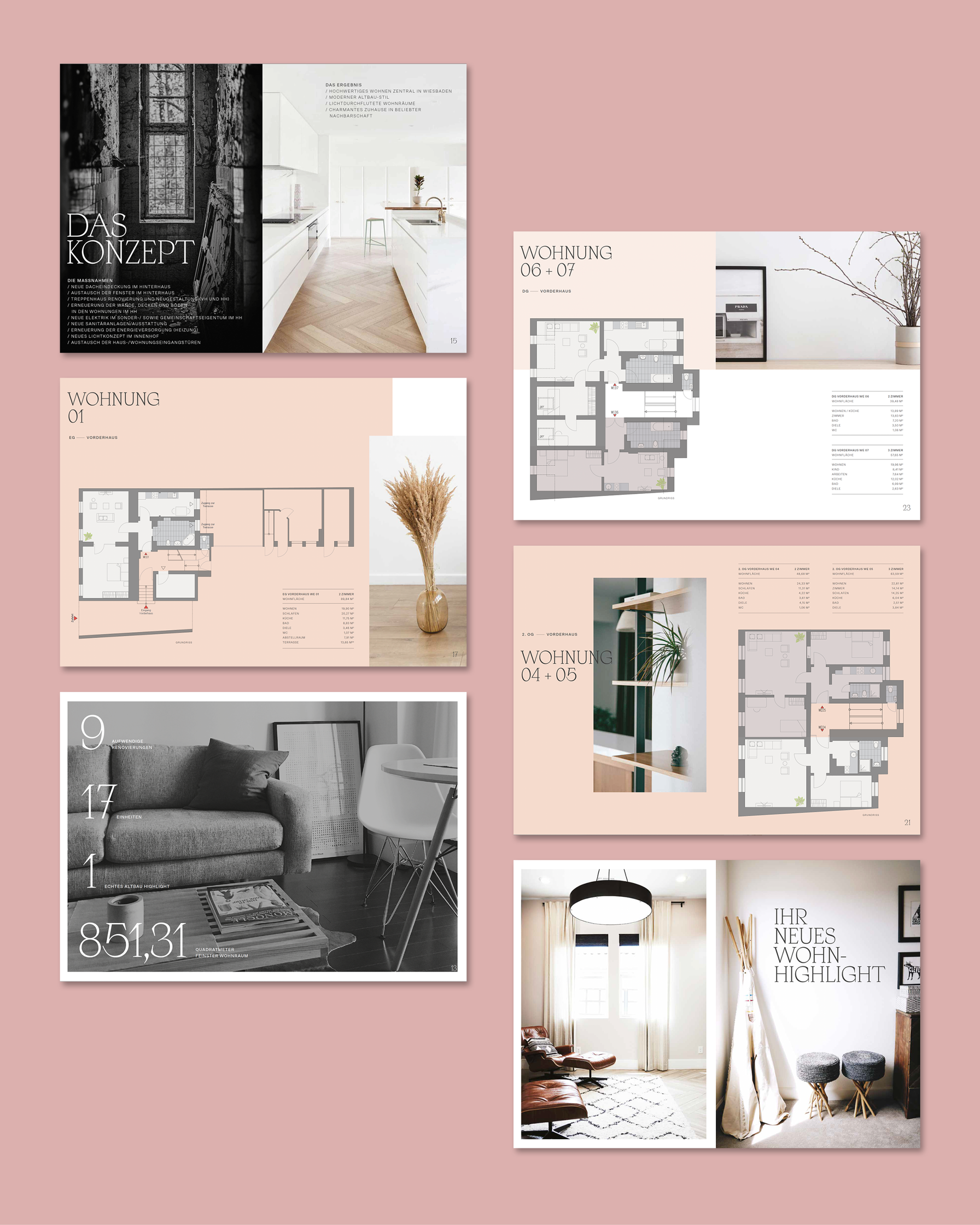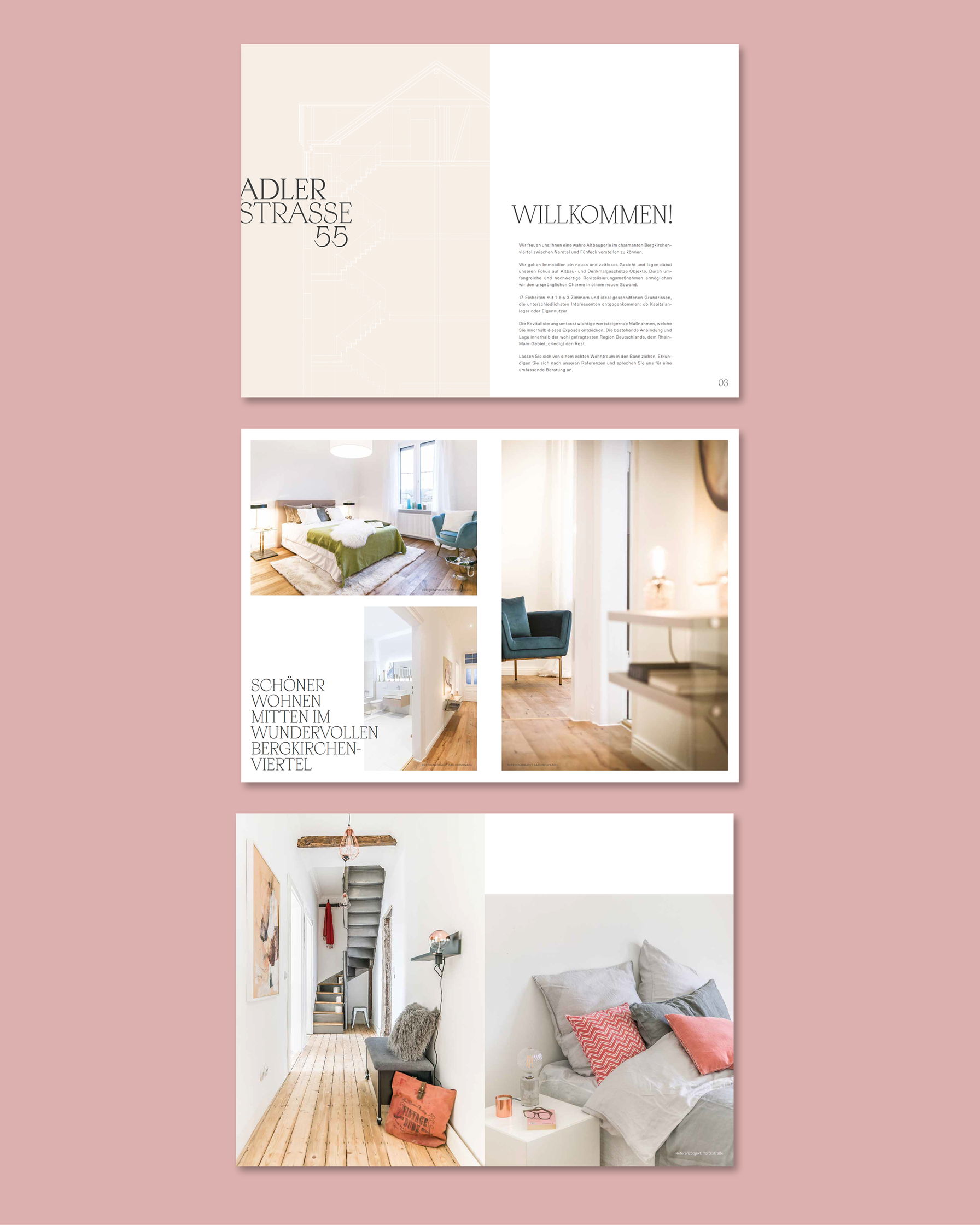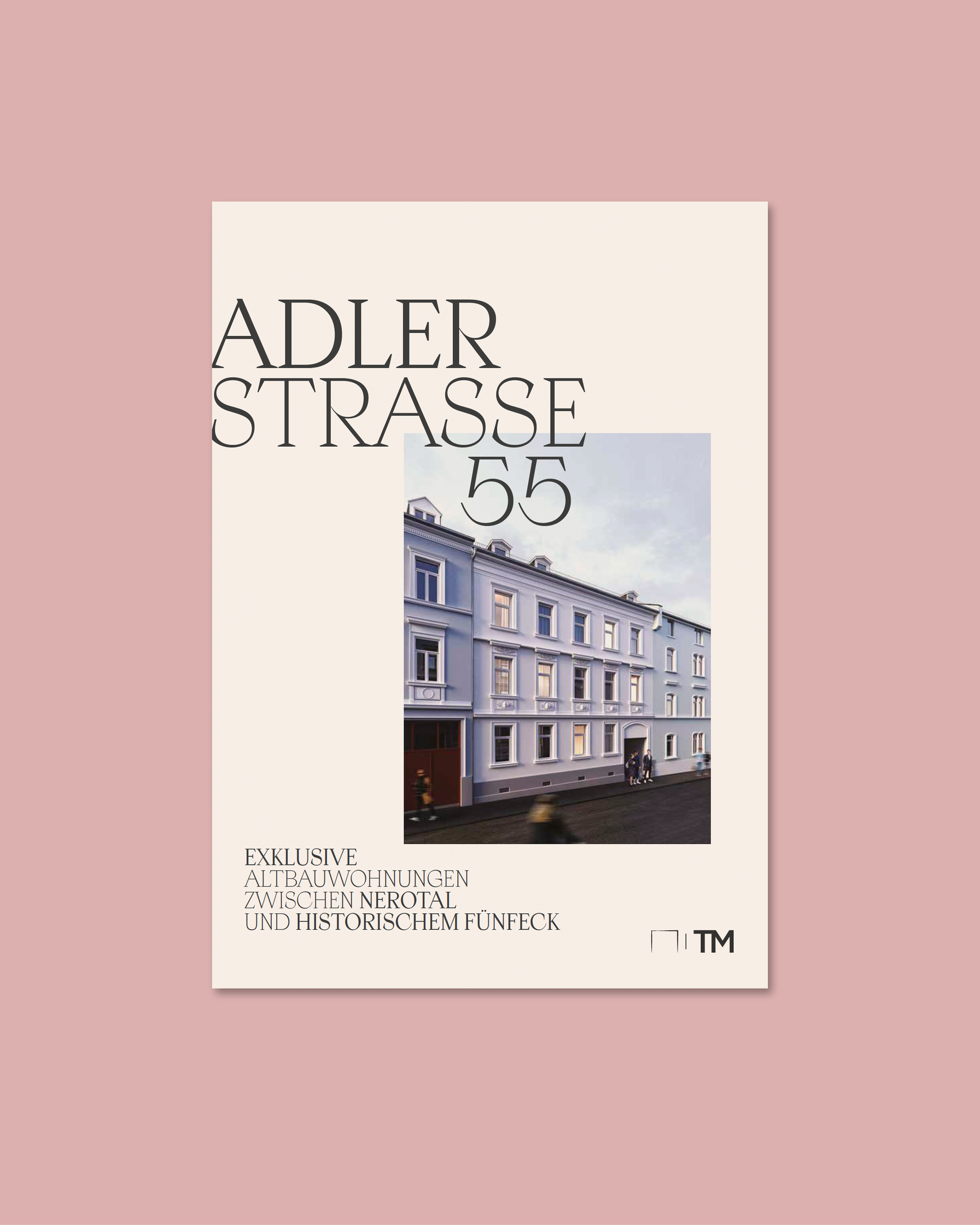 Gestaltung einer Verkaufsbroschüre zum Immobilienprojekt ADLERSTRASSE 55 – exklusive Altbauwohnungen in Wiesbaden