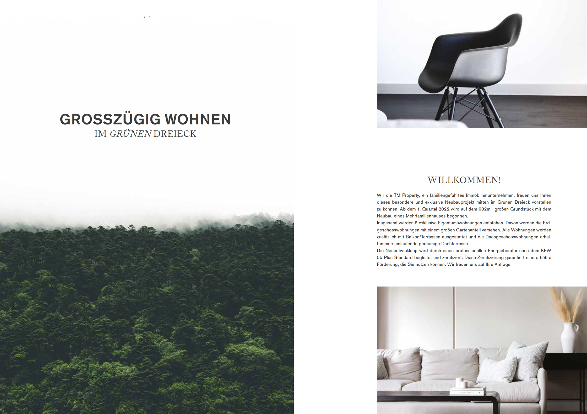 Gestaltung einer Verkaufsbroschüre zum Immobilienprojekt 'Grünes Dreieck' in Halle, Heide Süd
